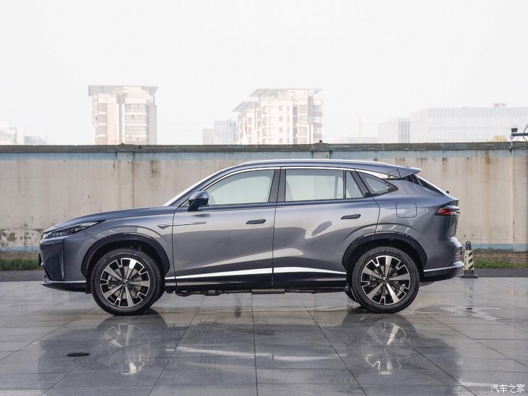 侧面来看,轮圈尺寸为19英寸,并且提供选配20英寸轮圈。隐藏式门把手似乎已经成为了新能源车型的标配,在D5X上我们也能看到这种设计。侧面的线条也很能体现出荣威D5X的优雅设计美学。