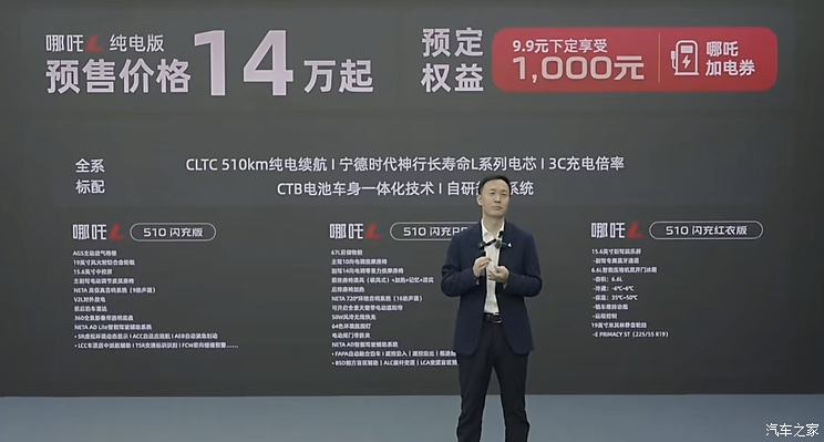 [本站 资讯] 5月26日,哪吒L(参数|询价|全景看车)纯电版开启预售,新车将提供三个版本,与增程版配置相同,新车预售14万元起,9.9元下定享受1000元加电券。哪吒L纯电版将于6月下旬公布价格,7月开启交付。哪吒L定位为一款中型SUV,基于山海平台打造,采用单电机,全系续航510km,充电10分钟可补充400km续航。目前,哪吒L的累计订单已经超过3万台。此外,由于先期对销量预估不足,可能存在延迟交付的情况,哪吒方面表示,将对超过30天未完成交付的用户,自31天起按每天50元补贴,上限为3000元。哪吒将在6月进行哪吒L的OTA升级,7、8月份发布音响专属品牌。