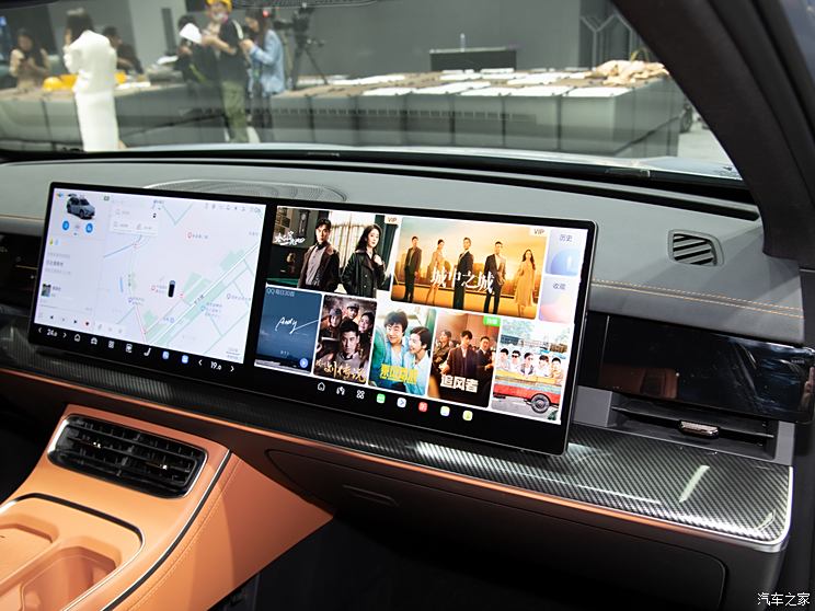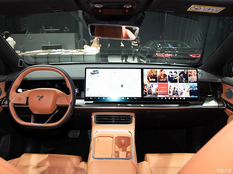内饰方面,车内搭载两块15.6英寸大屏幕,包括中控屏和副驾屏,连为一体,在高通8155P芯片的加持下,车机能够带来更畅快的影音娱乐体验。内饰采用双色设计,注重材质的打造,车内没有多余的按键,整体仍然是简洁的风格。新车将会推出美拉德棕和慕斯白两种内饰配色。
