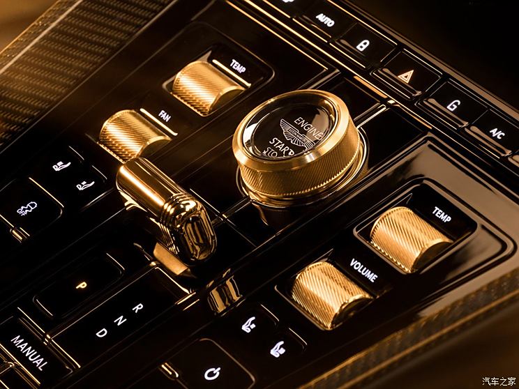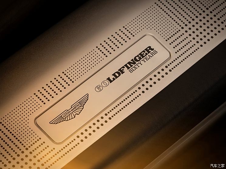 进入车内,新车配备了专属的Goldfinger 60周年铭牌,周围采用威尔士亲王点阵穿孔图案进行装饰,充满了艺术气息。为切合“金手指”的主题,车内的换挡拨杆、启动按钮和滚轮采用了18K黄金材质,进一步提升了内饰的豪华质感。