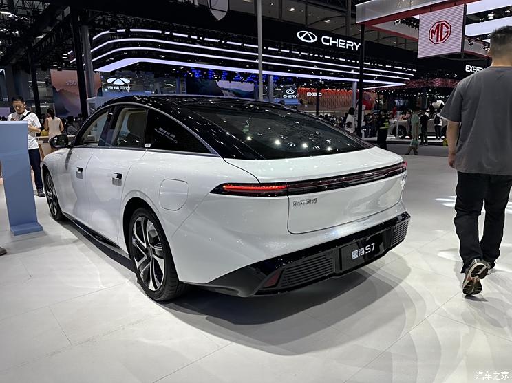 外观方面,星海S7增程版与纯电版车型采用相同的设计,新车采用轿跑式车身设计,风阻系数仅为0.191。车头采用无中网的设计,7型的前大灯格外引人注目,上部为分段式的日行灯,中间为透镜车灯,下部仍为川字型日行灯,很有特点。