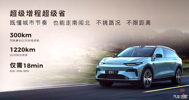动力方面,新款零跑C11增程版搭载1.5L增程器,CLTC纯电续航300km,CLTC综合续航1220km,综合功率200千瓦,综合扭矩320牛·米,CLTC馈电油耗5.11L/100km,0-100km/h加速7.6秒。纯电车型采用800V架构,CLTC续航提升至640km,30%-80%快充提升至18分钟,后置后驱单电机综合功率提升至220千瓦,综合扭矩360牛·米,0-100km/h加速6.1秒。新车还配备FSD悬架软硬调节。