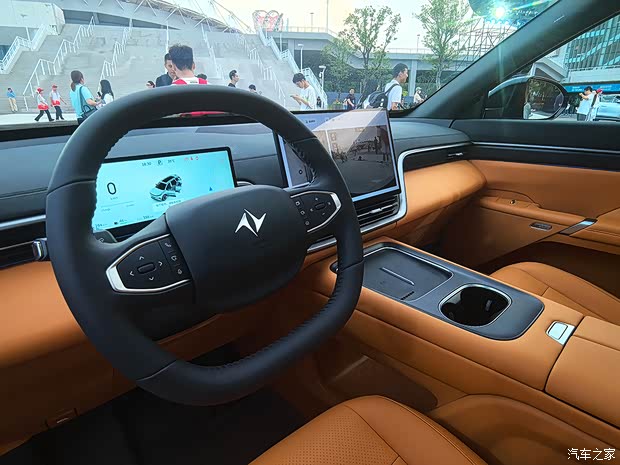 eπ008车内配备15.6英寸悬浮式中控屏和10.25英寸仪表盘,从此次改款车机系统升级为8295P芯片,后排屏幕从2K升级为2.5K。功能层面,增加QQ音乐、酷狗音乐等App,高德地图进行了升级,增加哨兵模式让它的实用性更强。此外新车取消了头枕音响,取消了移动滑轨冰箱,调整为常规扶手箱冰箱。