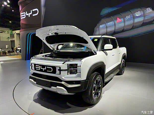 车尾方面,该车的后尾箱门也配有大尺寸BYD品牌LOGO,尾灯组采用纵向布局以及熏黑式的尾灯组,后货箱则拥有1450L的货箱容积。车身尺寸方面,新车长宽高分别为5457/1971/1925mm,轴距为3260mm;接近角和离去角分别为31°和19.3°,满载离地间隙为210mm。