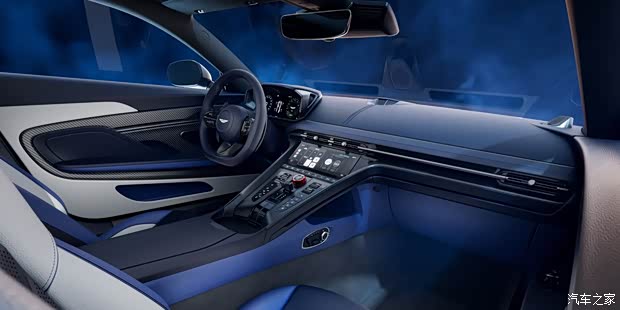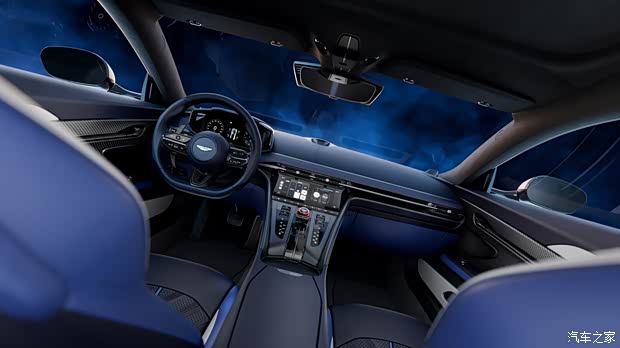 坐进车内,新车的内饰基本与普通版DB12保持一致,仅对部分细节进行了调整。新车应用了三幅式方向盘,白蓝黑三拼色内饰与外观呼应,座椅上有蓝色的“S”徽标刺绣。空调出风口下方的内嵌式中控屏幕可以调节空调,再往下是换挡拨杆及大量的物理按键,包含驾驶模式选择、座椅加热等功能。新车配备宝华韦健的音响系统,保障音乐质感。