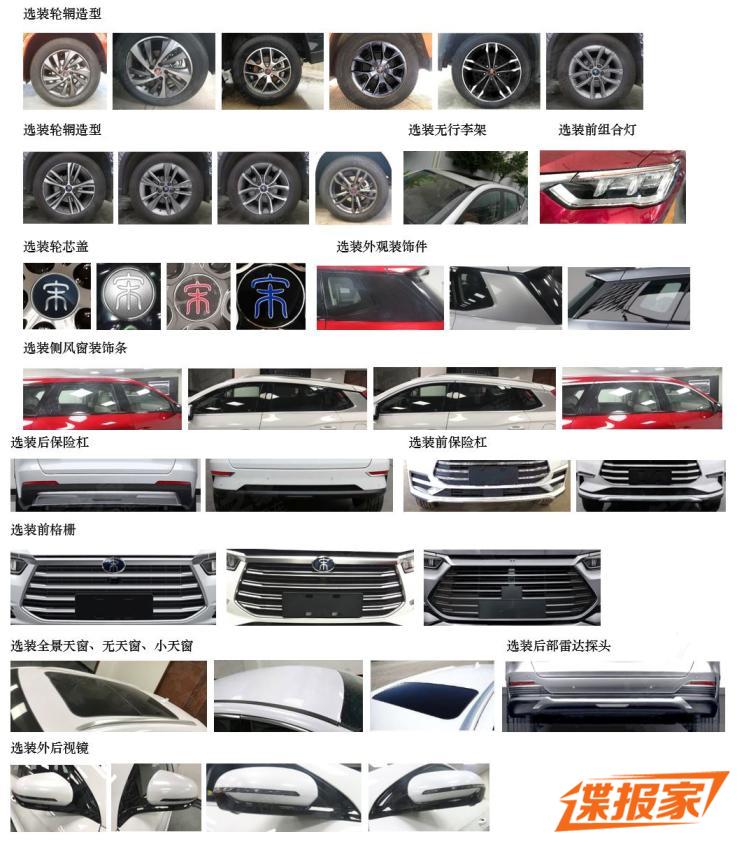 外观方面,新车的中网有所调整,面积进一步增大的同时还引入了五根镀铬饰条,第一根镀铬饰条的面积进一步增大并与两侧的灯组相连,“宋”的车型标识也取消了老款车型的装饰圈。此外新车的前包围两侧还采用了不同的造型,镀铬饰条的数量有所减少。