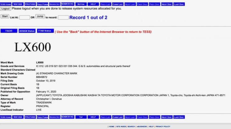 [本站 资讯] 新一代雷克萨斯LX即将于2021年正式发布,近日有海外媒体透露,雷克萨斯在美国和澳大利亚注册了全新商标――LX600,这或许将成为新一代雷克萨斯LX的旗舰车型。