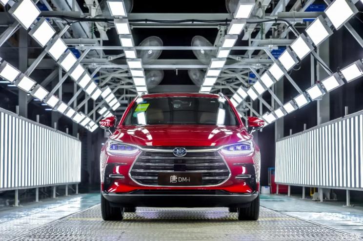 [本站 新能源] 日前,我们从比亚迪官方获悉,比亚迪唐DM-i正式下线。新车基于比亚迪DM-i平台打造而来,主打燃油经济性,共推出三款车型,售价区间为18.98-21.68万元。根据电池组大小不同,比亚迪唐DM-i提供52km、112km两种纯电续航里程的车型(NEDC工况),在馈电状态下的百公里油耗低至5.3L和5.5L。