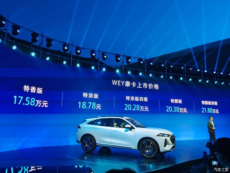 [本站 新车上市]5月21日星期五,WEY品牌正式公布了旗下全新中型SUV――WEY摩卡的售价,新车共推出5款配置车型,售价区间为17.58-21.88万元。