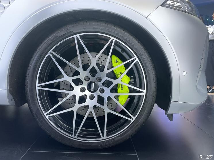 车身侧面,上扬的腰线起始于前翼子板中央,并在尾部连接到尾灯灯眉,同时车门下方双腰线的设计也勾勒出起伏的光影感。车身尺寸方面,新车的长宽高分别为4875/1960/1690mm,轴距为2915mm,定位中型SUV,而21英寸双五辐式轮圈的配备也增加力量感。