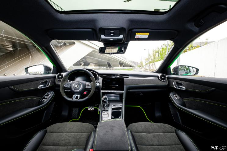 新车内饰设计改变不大,但在中控功能台和座椅上增设了Alcantara材质,四周则采用了真皮,整体设计提升了乘坐舒适感。三辐式多功能方向盘延续了名爵6的设计,由于在三点和九点位置上采用了翻毛皮包裹,避免了驾驶员在激烈驾驶下的打滑失手。除此之外,车内的中央扶手、饰板等多个部件也采用了相同的翻毛皮材料包裹。