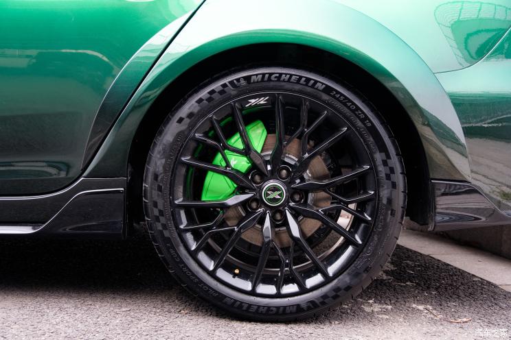 此外,作为一款主打性能的车型,该车还配备了前扰流板、车头进气口、宽体包围、后尾翼以及扩散器等运动套件。轮胎方面,名爵6 XPOWER采用了米其林Pilot Sport CUP2高性能半热熔花纹轮胎以及赛用级920E 6活塞固定卡钳,百公里制动距离仅为33米。细节之处尽显MG XPOWER家族的运动气质。