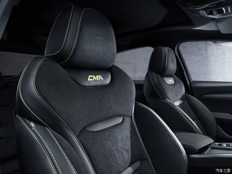 内饰方面,新车采用官方名为悬浮能量座舱设计,在座椅、车门板、车顶等处均覆盖了Alcantara材质,提升档次感。当然,新车还在座椅上标记“CMA”徽章,并融入较多的极光绿缝线点缀,带来能量穿梭在黑夜中的即视感。值得一提的是,新车还在中控饰板和车门饰板中加入了星河镭雕3D设计,看上去十分精美。