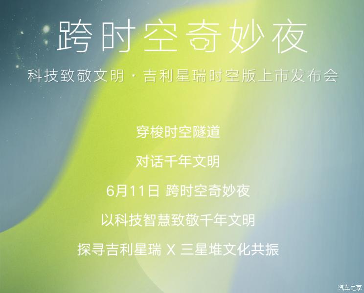 [本站 资讯] 日前,我们从官方了解到,吉利星瑞时空版将于6月11日正式上市。同时,根据此前信息来看,新车将在6月5日上午10:00开启盲订(限量发售1000台)。用户可在线上官方盲订平台预付1999元订金,即可完成预订。
