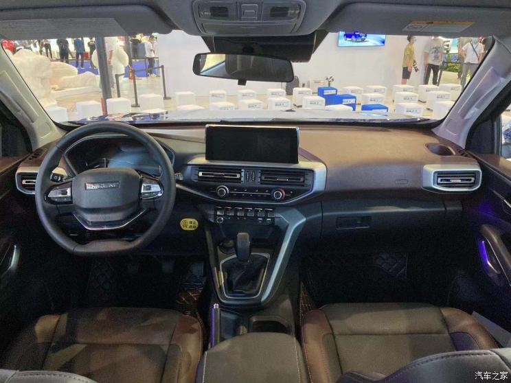 内饰设计偏向乘用车,采用了两辐式方向盘。此外,新车将根据配置不同搭载3.5英寸或7英寸的仪表,同时还将标配10英寸的悬浮式显示屏。