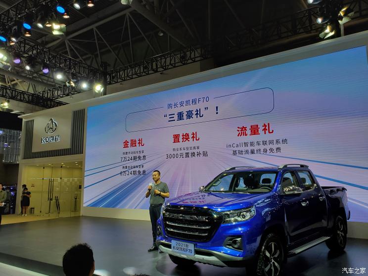 [本站 资讯] 重庆车展上,2021款长安凯程F70发布预售价,预售价区间为9.68-14.38万元,并公布了三重礼。对比老款车型,新车在智能化、舒适配置等方面均有升级。