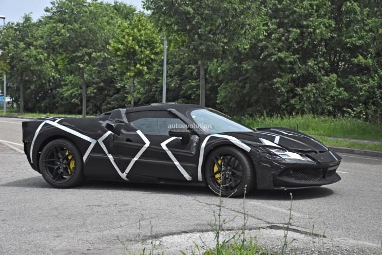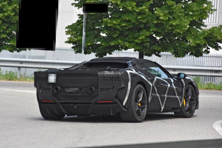 车身侧面来看,新车的中后段位置在整车比例中偏长,这与SF90的比例设计有些类似。车尾部分同样也包裹着厚重的伪装,但是可以看到新车双边共两出的排气被设置在了车尾中央的位置,为后包围上的尾部扩散器留出了充足的空间,让尾部扩散器能够更好地发挥其作用。