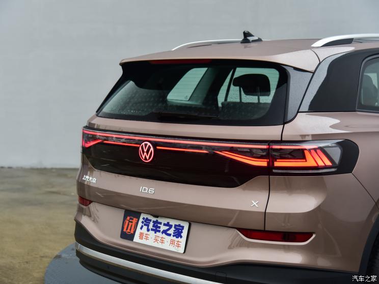 上汽大众ID.6 X尾部整体设计与前脸呼应,层次分明,饱满立体。贯穿式尾灯组是现下大部分车型都会采用的流行设计元素,不过新车在左右尾灯内部采用了“X”型的设计,点亮后极具辨识度。