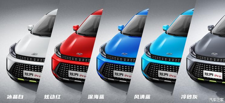 在车身配色方面,炫界Pro将推出5款纯色车身及4款双色车身。其中,5款纯色分别为冰晶白、炫动红、深海蓝、风清蓝、冷砂灰。