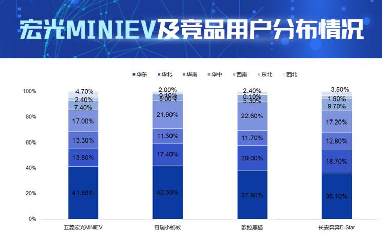 三、用户分布:华中、华东消费者最爱宏光MINIEV