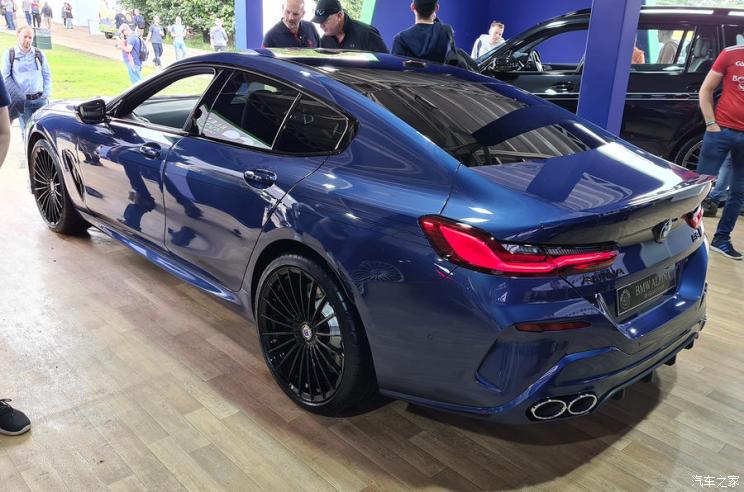 外观来看,新车整体造型与宝马8系Gran Coupe版本相比差别不大,不过ALPINA在新车的前包围上进行了更加运动化的调整,例如增加了新的前唇,包围上三分式的散热开口内部也使用了更加运动化的设计,使其与普通的8系Gran Coupe进行明显的区分。此外,新车依旧保留了宝马标志性的双肾前格栅与狭长的LED激光大灯,搭配前发动机盖隆起的筋线,增添整车的力量感。