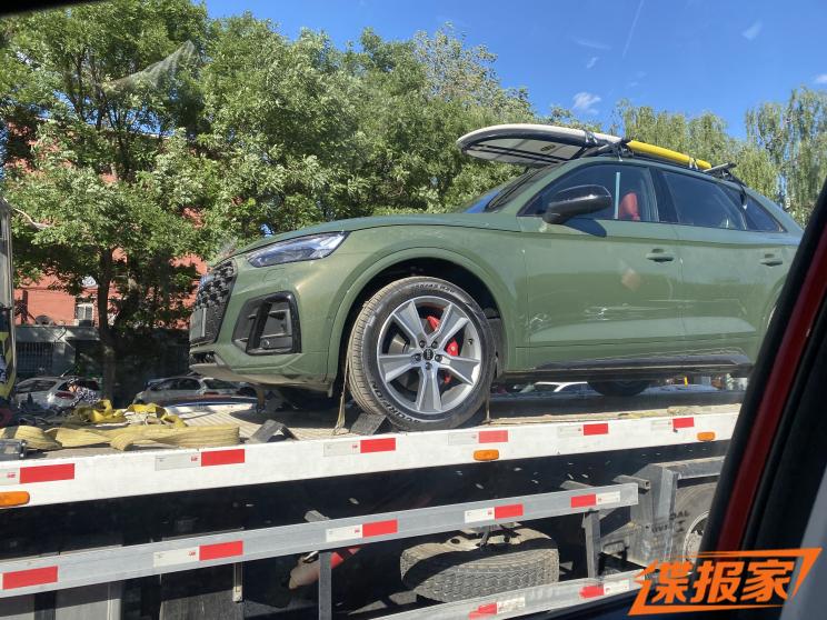 根据此前我们发布的谍照可见,外观方面,新车与此前上市的新款Q5L一样都采用了奥迪最新的设计语言,不过新款奥迪SQ5在Q5L基础上进行了黑化处理,包括中网、雾灯区域以及侧裙处等等。另外我们可以看到新车将会配备20英寸轮圈,轮胎尺寸为255/45 R20,在轮胎内配备的是六活塞制动卡钳。