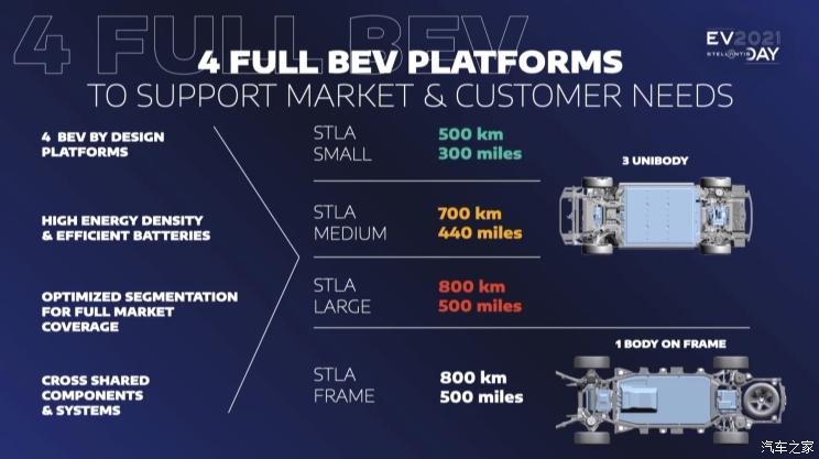 STLA小型车平台,该平台生产的电动汽车续航里程可达500公里/300英里