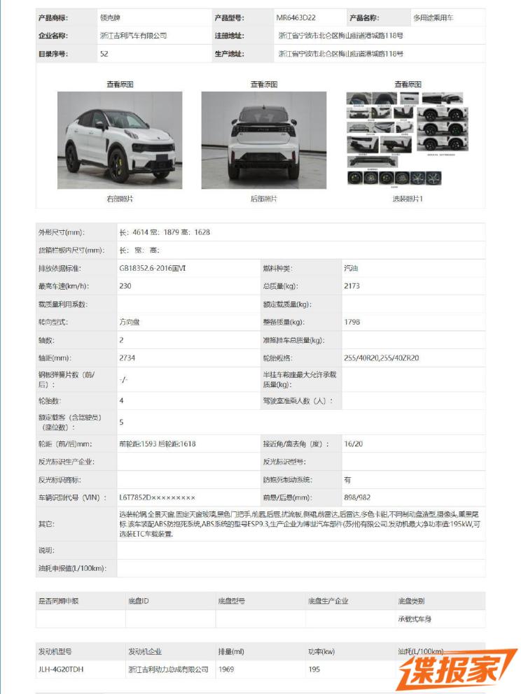 欢迎转载,标注来源:深圳汽车网 » 搭265马力2.0T发动机 曝领克05+申报图