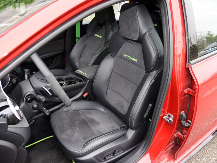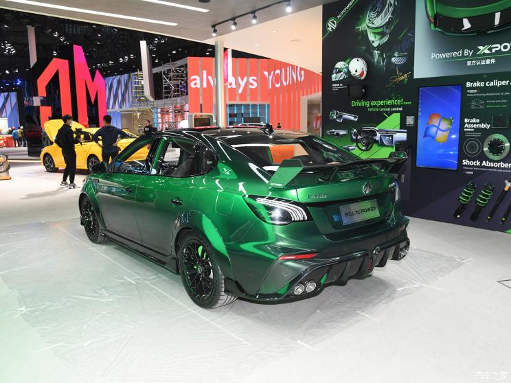 名爵6 XPOWER基于名爵6插混版打造,设计方面参考了MG TCR赛车。这款车外观部分采用“骐骥绿”色手工金属漆,配合黑色渐变风格,十分张扬,具有很高的辨识度。既然是以赛车风格为主,所以这款车配备全新的前扰流板、车头进气口、宽体包围、碳纤维后扰流板以及扩散器等套件,还配备铝合金锻造轮圈、米其林Pilot Sport CUP2高性能半热熔花纹轮胎以及赛用级920E 6活塞赛车卡钳,在性能方面相比于普通版要更加激进一些。