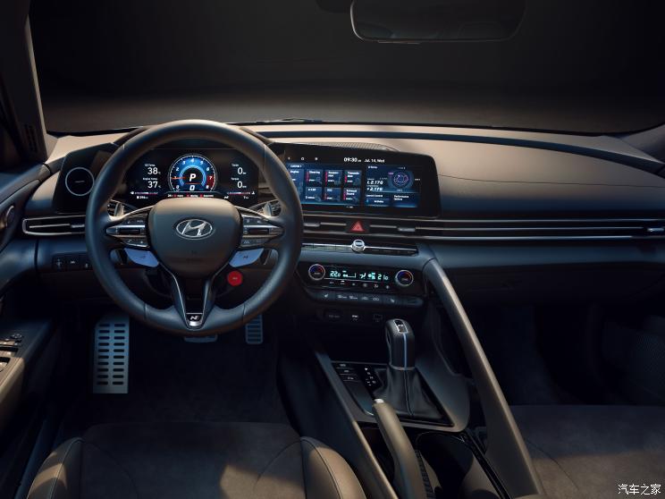 相比之下,新车在内饰布局上并没有太大的变化,仍使用大面积皮革和软质材料进行包裹。如果说哪里能够体现驾驶的激情,当你坐进极具包裹性的运动座椅,抓住N系列专属三辐式方向盘,摁下红色点火开关的那一刻,它就能让你感受到这不再是一台普通的现代伊兰特了。甚至新车使用了更加“复古”但却更有乐趣的机械手刹。