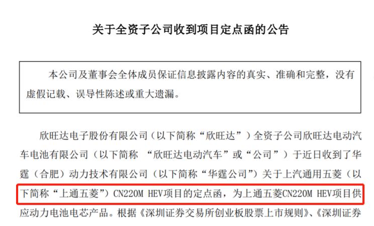 [本站 资讯] 近日,欣旺达发布公告称,公司于近日收到上汽通用五菱CN220M HEV项目的定点函,为上通五菱CN220M HEV项目供应动力电池电芯产品。CN220M为五菱凯捷的车型代号,这也意味着五菱凯捷将推出混动车型,但并不确定是否为插混车型。