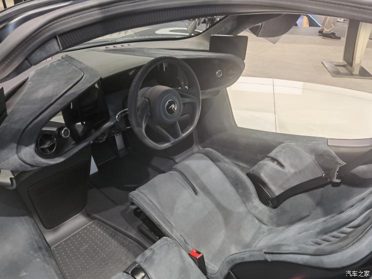 车内部分,新车最大特点可以说是其内部采用了与迈凯伦经典跑车――F1相同的1+2式三座布局,驾驶座位和方向盘均位于车辆中线上。驾驶员前方的对称式仪表台布局非常简洁,三块液晶屏幕、平底式三辐式方向盘,以及左右两侧的控制钮是其上所有的装备。当然新车还采用了虚拟后视镜,仪表台左右两端的屏幕应该就是电子后视镜的专属显示屏。