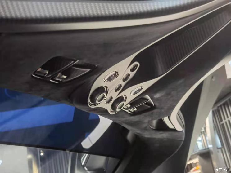 定制碳纤维座椅设计源自迈凯伦F1,在主驾驶座椅两侧的斜后方,则是两个独立的乘客座椅。此外,这款车的按钮式换挡机构则被设计在了车顶中央,也就是驾驶员的头顶上方。