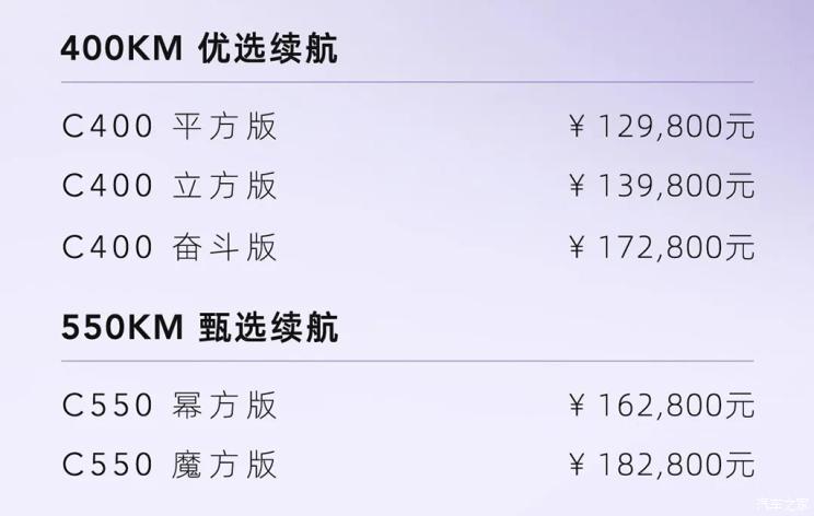 | 550KM 甄选续航 C550 幂方版 | 16.28 | 550km |