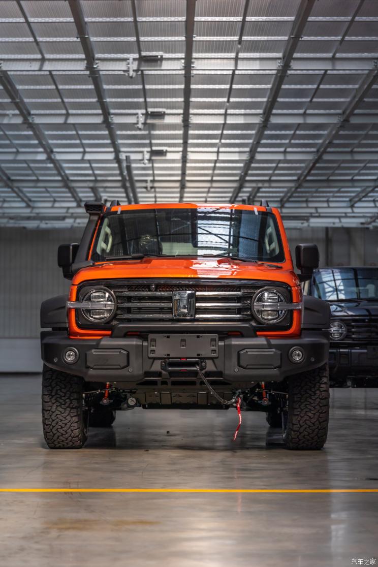 整体设计层面,新车将会整体与坦克300车型保持一致,不过,在诸多专业越野装备的加持下,新车将会具备更强的野性。首先,新车换装一款全新样式的前包围,宽大的黑色护杠与矩形防撞块能够让车辆看上去更具野性。前杠内部还将集成WARN绞盘。此外我们还可以看到,新车将会配备一款集成大尺寸通风口的引擎盖,同时,涉水喉也将不会缺席,进一步提升在野外的“生存能力”。