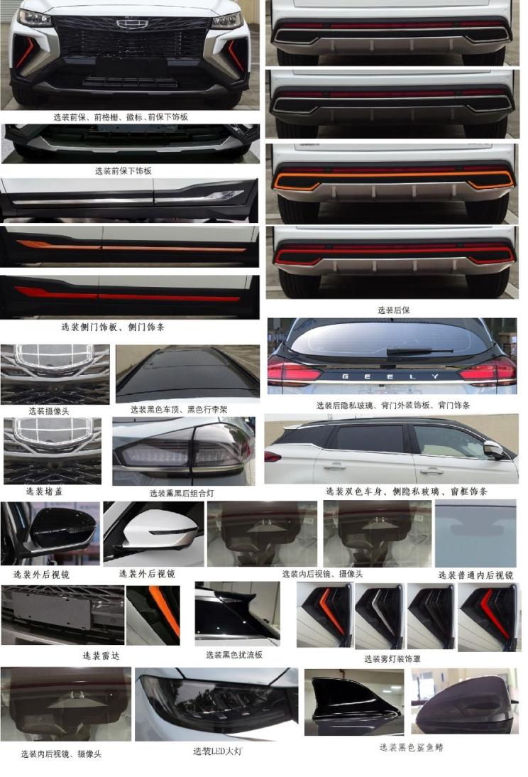 从此前曝光的图片来看,新车采用了与吉利家族现款在售车型有较大不同的设计语言,整体视觉效果十分激进。具体来看,该车运用大尺寸前中网,内部造型营造出X型,彰显独特的身份,与命名相呼应,同时其中网的上、中、下分别采用不同的形状进行装饰,辨识度极高。雾灯区域的进气口尺寸同样很大,并且提升了视觉重心。