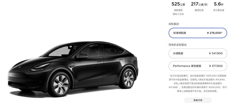 特斯拉Model Y标准续航版NEDC续航里程达到525公里,相比同版本的Model 3要高出不少。采用单电机后轮驱动形式,0-100km/h加速仅需5.6秒,最高车速可达217km/h。目前,官网显示如果现在订车,交付时间需等待6-10周。关于特斯拉的最新资讯,请持续关注本站的后续报道。