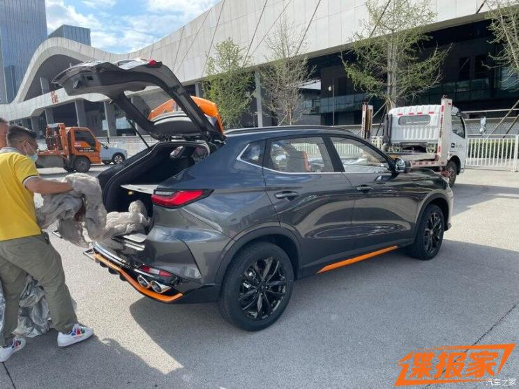 来看外观,新车的前脸整体还是延续着欧尚X5的样子,增加了橙色装饰之后看上去变得热血不少。同样的装饰在侧裙、后包围和后扰流板处也可以看到。此外,双边共四出的排气造型看上去也是相当的战斗。