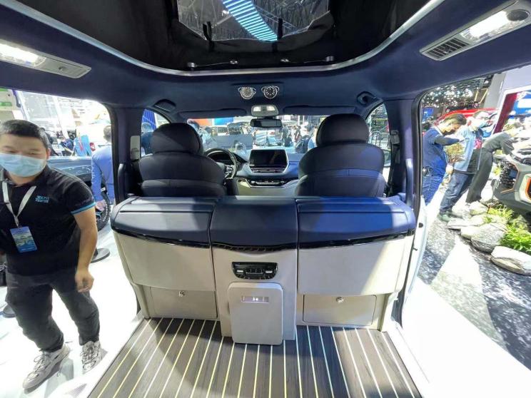 内饰方面,旅行家G20极光版后排2个能躺平150度的独立座椅,带有全向电动调节、电动脚托、电动腰托、加热/通风、按摩、记忆功能。配有滑动可伸缩的小桌板与中置集成吧台,提供即热式饮用水、冰箱。