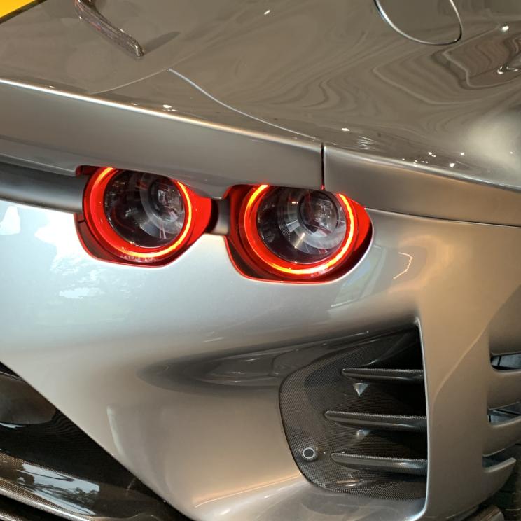 这款基于812 Superfast打造而来的812 Competizione,可以看做是前者的性能版车型,整车在经过全新的包围套件覆盖下,拥有了更加夸张的视觉效果。其中前保险杠两侧配备了碳纤维的制动通风管道,包围外侧在细节之处还配有小型的空气分流器,更好的整流了车身侧面的空气流动。同时前发动机盖上还增加了额外的空力装置,可以将从车头灌入的空气顺利的从该空力套件中导出,大大提升车头下压力的同时,还提供了更好的散热效果。