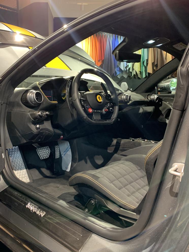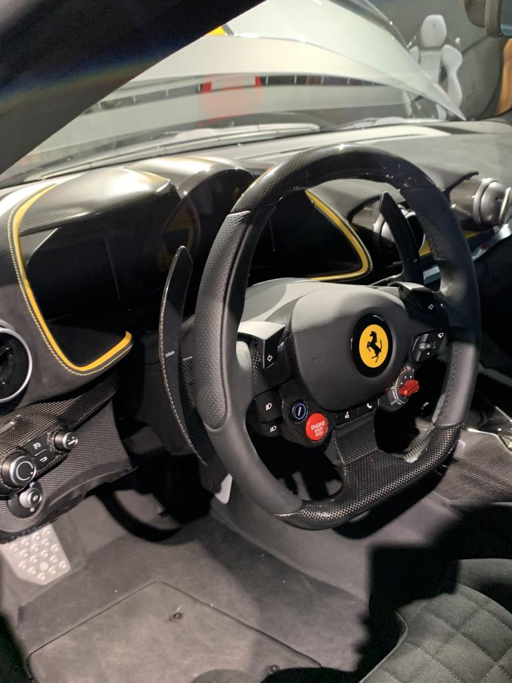 作为一款适合在赛道上驰骋的利器,法拉利812 Competizione的内饰主要以简洁的功能性为主,仪表盘由传统的机械指针转速表和两块LED显示屏组合而成,配合功能齐全的碳纤维方向盘,使得全车的驾驶信息和功能全部集中在你手中,简洁的中控仅用于操作音响空调等设备,而下方的换挡机构设计甚至可能被忽略掉。