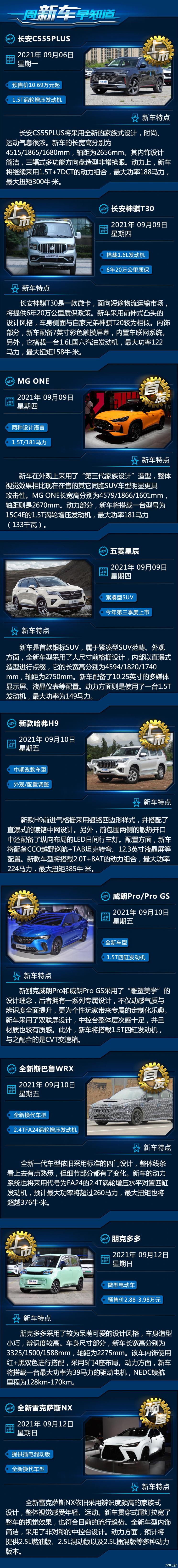 下周不管是首发、上市,还是预售的车型数量很多,车型涵盖了SUV、微卡、轿车等多个市场,车型类别十分丰富。其中,诸如全新长安CS55PLUS、MG ONE、斯巴鲁WRX以及雷克萨斯NX等车型都颇为重要,值得关注。(图/文 本站 周楚然)