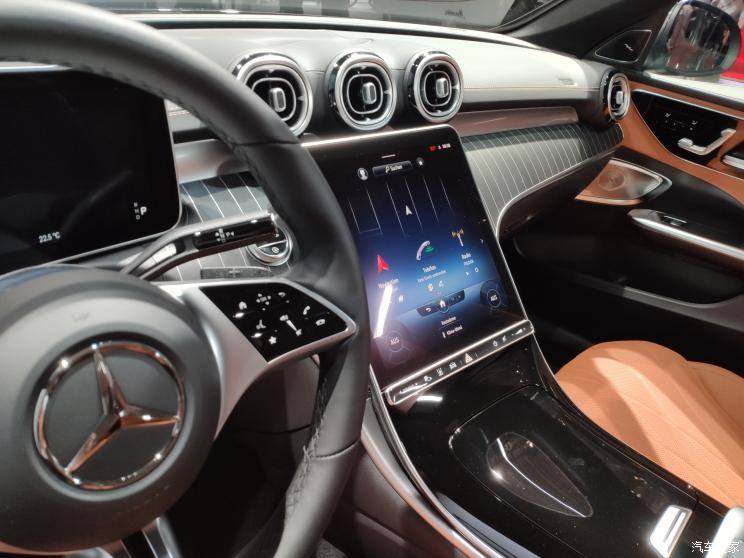 内饰部分,新车新车与全新C级轿车大体相同,采用悬浮式设计的10.25英寸全液晶仪表盘,并使用了全新的三辐方向盘,造型更加精致。新车的中控显示屏中将增加一个特殊的“offroad”显示屏,可以显示车辆倾斜角度、下降高度和转向角度;它还可显示车辆的地理坐标和指南针功能。