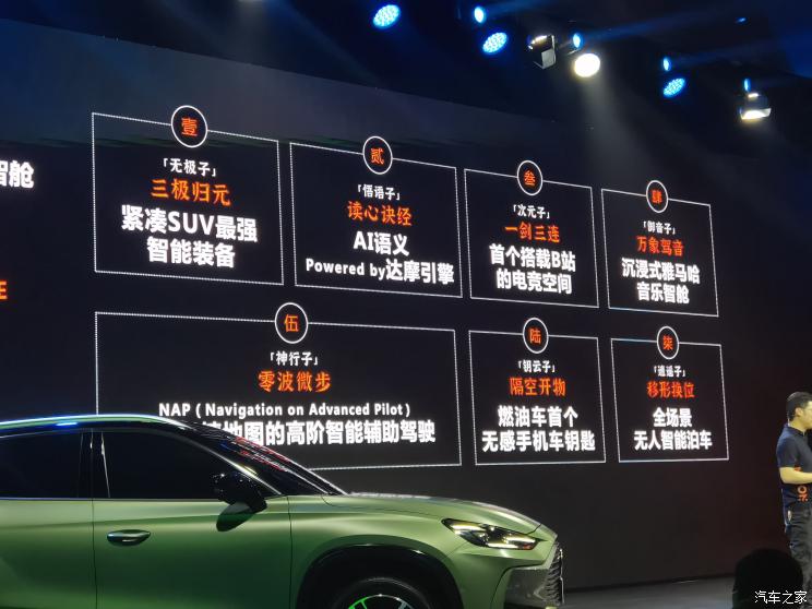 其中,“悟语子”代表着AI语义功能,能够增强车辆与乘客之间的交互感;“次元子”则代表了新车的“破圈”精神,是首个搭载B站的电竞空间;“御音子”则代表着,新车所配备的YAMAHA音响能够让我们享受到更加沉浸式的音乐体验;“神行子”意味着车辆具备着高阶智能辅助驾驶功能,同时,这套智能辅助驾驶系统基于高精地图打造,能够进一步增强车辆的安全性;此外,“钥云子”与“逍遥子”代表着新车集成了无感手机车钥匙以及全场景无人智能泊车等功能。