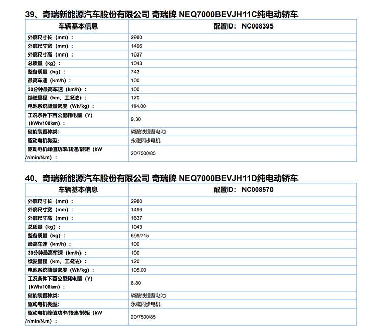 [本站 新能源] 日前,我们从工信部获悉,奇瑞QQ冰淇淋的部分详细信息,该车或将搭载磷酸铁锂电池组,有两个续航里程版本,分别为120km和170km,新车或将在2021年11月正式上市。