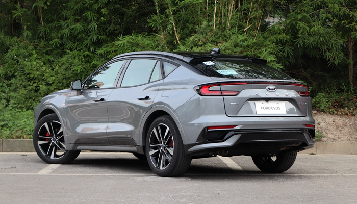 并且福特EVOS的轴距为2945mm,车长甚至接近5米。在目前福特在售的车型阵列里,只有金牛座和Mustang Mach-E和它身形相当。如果你拉过去跟 Mustang Mach-E相比,福特EVOS在车身侧面会更显修长低趴(主要是更长的前悬、过渡更流线的溜背)。当两台车都摆在你面前的时候,你会觉得Mstang Mach-E更像个“两厢车”,而EVOS更像“掀背车”。