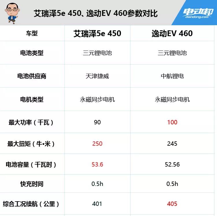 综上所属,两台车的续航和价格都差异不大,主要差异还是在内饰和配置上。如果您喜欢新潮的配置、丰富的辅助驾驶系统,想体验辅助驾驶带来的乐趣,不如选择艾瑞泽5e 450,自适应巡航和全景影像系统,能让您的驾驶更加轻松;而如果您在意颜值、做工,尤其是坐到一个高档内饰的车里心情都能变好,那选择逸动EV 460一定不会有错!