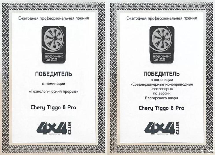 『瑞虎8 PLUS斩获俄罗斯“最具科技感SUV”和“最受媒体欢迎的中型SUV”』