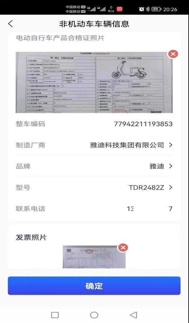 市民办理电动自行车登记上牌前,通过手机自主拍照上传身份证件等申请材料,并填写车辆品牌型号等车辆信息,实现个人信息、车辆信息在线提交;系统通过人脸识别确保了申请人真实有效,实现实人在线认证;同时,系统通过自动比对电动自行车产品目录,实现合规车辆在线核查。群众在线完成信息申报,到交管部门交验车辆合格后,窗口无需再次录入申请信息,可直接完成登记发牌。