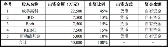 威孚高科表示,公司将以自有资金出资22500万元(占比45%),IRD出资7500万元(占比15%),Borit出资7500万元(占比15%),RBINT出资7500万元(占比15%),新动能基金出资5000万元(占比10%)。本次交易完成后,公司直接和间接持有合资公司75%股权,合资公司将会纳入公司合并报表范围。